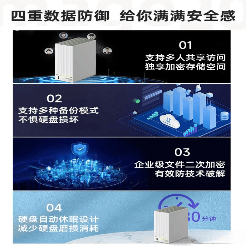 关于性能和技术创新,海康威视的NAS产品拥有先进的数据保护措施和智能管理功能。例如,支持AES256加密算法代替传统的存储方式,不仅确保了数据的安全性,还能自动分类文件,实现更加高效的存取效率。产品的低噪音设计也让用户在使用过程中得到良好的体验,未给家庭生活带来干扰。